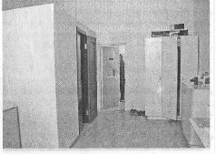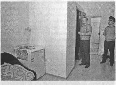 Рядом с кроватью — душ с умывальником и туалетом, холодильник — рядом с дверью камеры, еще шкаф